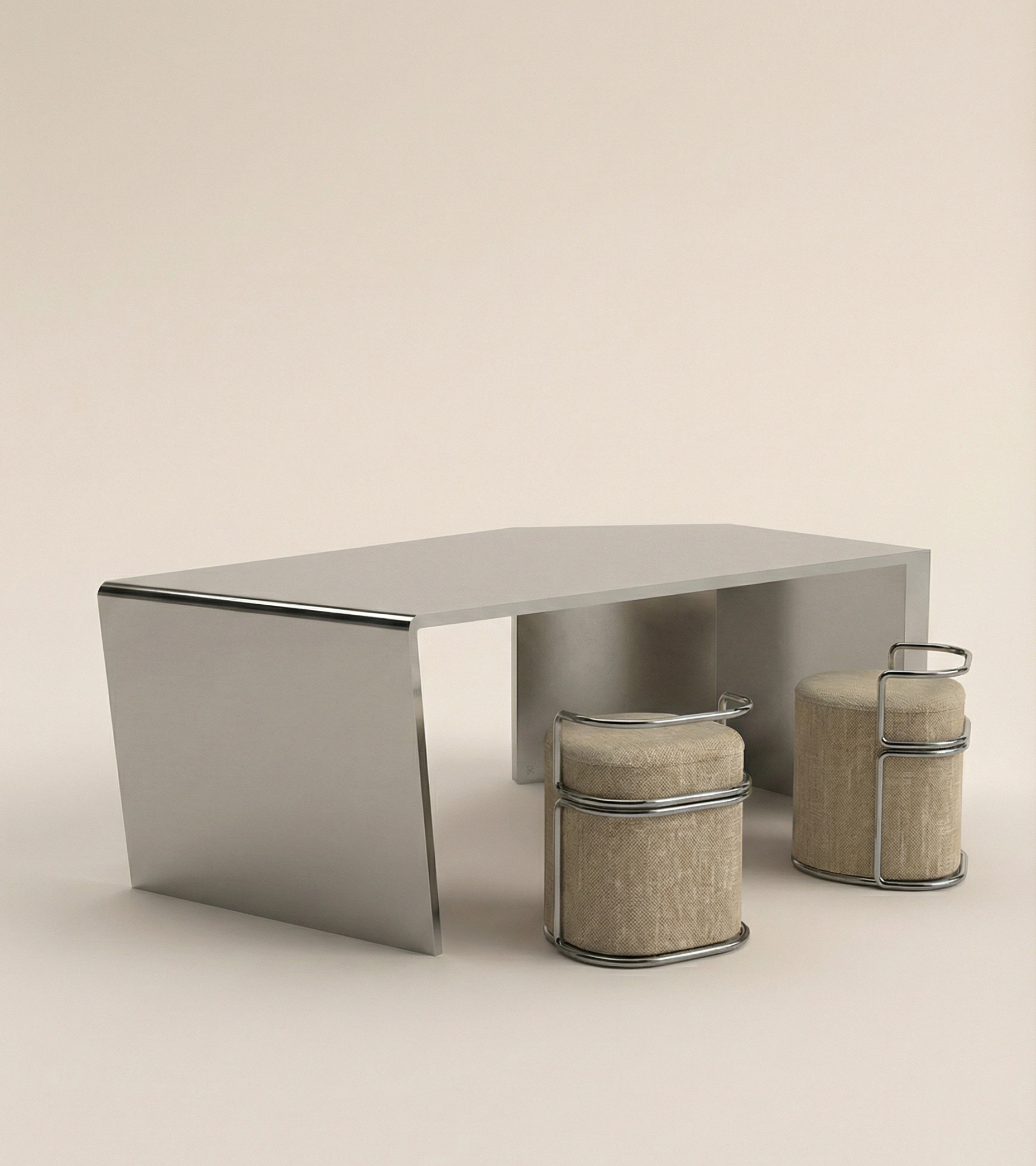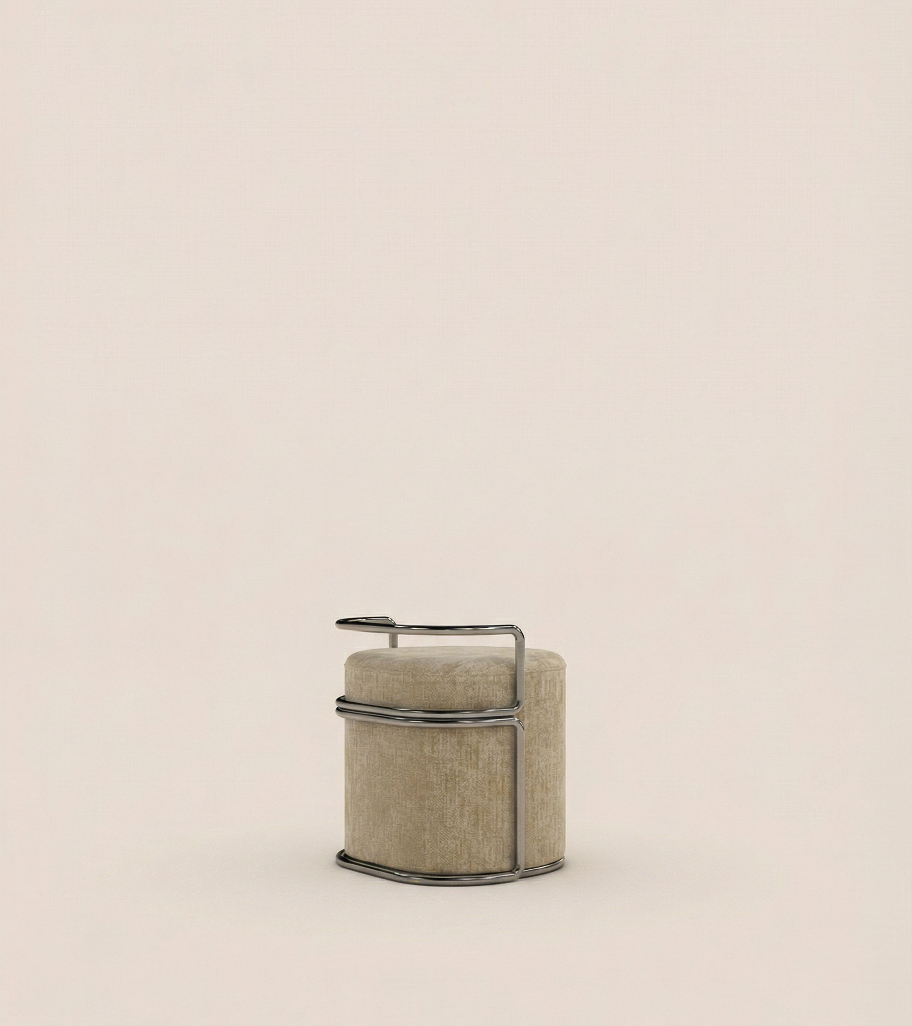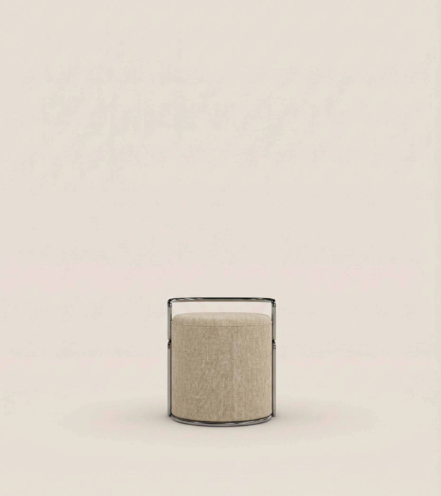 Fragment n°2 Héphaï est une assise en Inox brossé et tissus velours. Fabriquée dans des ateliers de ferronnerie et de tapisserie français.